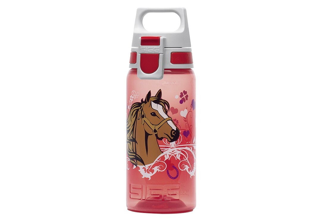„Guck mal, mein liebstes Pony, wie durstig du mich machst!“ Wenn kleine grosse Pferdenärrinnen bei ihrem Liebling sind, vergeht die Zeit wie im Flug. Gut, wenn da die leuchtend rote Flasche immer griffbereit ist! Die hochwertige, wiederverwendbare VIVA-Trinkflasche besteht aus transparentem Polypropylen, so dass man immer sieht, wie viel (oder wenig) man schon getrunken hat. Alle Materialien sind zu 100 % recycelbar und frei von Schadstoffen, wie zum Beispiel östrogenaktiven Substanzen – für einen sicheren Trinkgenuss. Der innovative ONE-Verschluss macht die Flasche nochmal besonders komfortabel: Tragen, öffnen, trinken, schliessen und sichern funktionieren bequem mit einer Hand. So ist die andere frei fürs Streicheln und Striegeln.