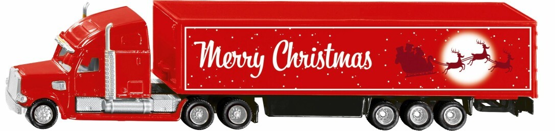 Festlicher Fahrspaß für kleine Weihnachtstrucker! Der Freightliner Weihnachtstruck bringt die Weihnachtsfreude direkt ins Kinderzimmer. In leuchtendem Rot, inklusive festlichem ''Merry Christmas-Schriftzug und zauberhaften Weihnachtsmotiven, sorgt dieses detailreiche Modell für festliche Spielmomente. Die robuste US-Zugmaschine ist mit glänzenden Chromdetails verziert. Mit seinen gummierten Rädern rollt der Truck sicher und ruhig über jeden Untergrund. Dank der kompakten Größe im Maßstab 1:87 ist er perfekt für kleine Hände und großes Spielvergnügen geeignet. Ein echtes Highlight für die Weihnachtszeit der Freightliner Weihnachtstruck bringt leuchtende Augen und spannende Abenteuer zu allen kleinen siku Lkw-Fans!