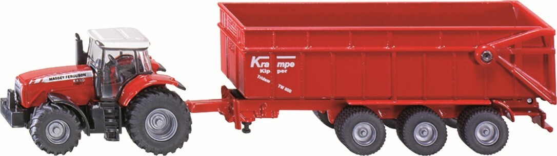 Detaillierter Massey Ferguson Traktor mit Anhänger der Marke Krampe zum Spielen und Spaß haben - Robust und stabil dank Konstruktion aus Metall, Abnehmbares Verdeck, Kippbarer Anhänger, Frontgewicht und Anhängerkupplung - Langanhaltender Spielspaß durch unzählige Kombinationsmöglichkeiten innerhalb der SIKU Farmer-Modellwelt - Ideal als Geschenk für große und kleine Landwirtschaftsfans geeignet, Perfekte Ergänzung zur SIKU FARMER Serie - Lieferumfang: 1x SIKU 1844 Massey Ferguson Traktor mit Anhänger, Maßstab: 1:87, Material: Metall/Kunststoff, Abmessungen: 18,4 x 3,2 x 4,4 cm, Gewicht: 0,139 kg, Farbe: Rot, Serie: SIKU FARMER