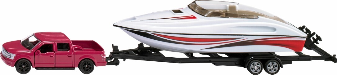 Der Ford F-150 ist der Inbegriff des ''American Way of Life und begeistert seit über 30 Jahren als meistverkauftes Fahrzeug in den USA. Dieser kraftvolle Pick-up ist groß, robust und vielseitig perfekt für jedes Abenteuer. Mit diesem Spielzeugset wird der ikonische Ford F-150 in einer spannenden Kombination geliefert: Ein starkes Motorboot reist auf einem stabilen Anhänger mit und sorgt für endlosen Spielspaß auf dem Kinderzimmer-Teppich! Der Ford F-150 beeindruckt mit seinem authentischen Design, gummierten Reifen und einer markanten Ladefläche, die jede Menge Platz für Fantasie-Abenteuer bietet. Natürlich verfügt der Pick-up auch über eine Anhängerkupplung, mit der der hochwertige Anhänger sicher verbunden wird. Das Boot selbst ist eine detailgetreue Nachbildung mit einer glänzenden Lackierung und realistischen Elementen, die Kindern das Gefühl geben, mitten im Abenteuer zu sein. Das Motorboot ist nicht nur optisch ein Highlight es ist sogar schwimmfähig! Ob auf dem Spielteppich oder in der Badewanne, das Boot bringt Spaß auf jeder ''Wasserstraße. Mit seinem robusten Tandem-Achs-Trailer aus Metall lässt es sich leicht ankuppeln und sicher transportieren. Ob Ausflug zum See, ein spannendes Bootsrennen oder ein Roadtrip durch die weite Prärie mit dem Ford F-150 und seinem Motorboot gibt es für kleine Abenteurer immer etwas zu entdecken. Gefertigt aus hochwertigen und sicheren Materialien, sorgt dieses Spielzeug für langanhaltenden Spaß und ist ein Must-have für jeden kleinen Auto- und Boots-Fan!