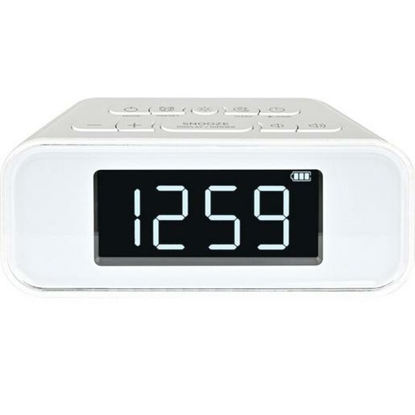 Uhrenradio, UR 4200 BT bietet eine Vielzahl an Funktionen, die Ihren Alltag erleichtern. Es verfügt über ein UKW-PLL-Radio mit 30 Senderspeicherplätzen und digitaler Frequenzanzeige. Die Uhr zeigt die Zeit im 12- oder 24-Stunden-Format an und bietet zwei Weckzeiten (Dual Alarm), wobei Sie sich entweder mit Radio oder Summton wecken lassen können. Eine Weckwiederholung und ein Einschlaf-Timer (bis zu 90 Minuten) sind ebenfalls integriert. Besondere Merkmale sind die Bluetooth-Musikwiedergabe, ein LED-Display mit drei Helligkeitsstufen, ein LED-Nachtlicht sowie eine USB-Handy-Ladefunktion. Ein Kopfhöreranschluss und ein USB-Netzadapter (5V 1A) sind ebenfalls vorhanden. Der Akku hat eine Kapazität von 1900 mAh. Das Gerät ist in den Farben Schwarz und Weiß erhältlich und wiegt netto 0,318 kg.