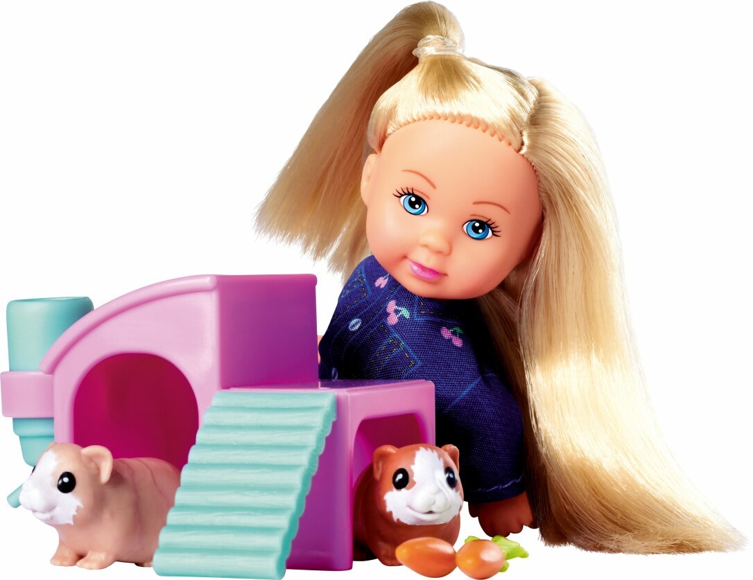 EL Guinea Pigs Evi mit zwei Meerschweinchen und Häuschen, Trinkflasche und Karotten, 12cm, WB, 3J+