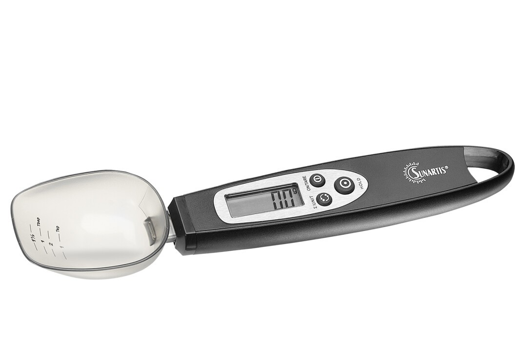Ein absoluter Helfer in der Küche: Die digitale Löffelwaage mit Zuwiege-Funktion ist ideal zum Abwiegen kleinerer Mengen Zucker, Mehl, Sahne, Gewürzen, Tee etc. beim Backen und Kochen. Die LC-Digitalanzeige ist von Gramm auf Unzen umschaltbar und der Löffel ist abnehmbar und spülmaschinenfest. Zusätzlich hat die Löffelwaage eine Haltefunktion im Display mit stufenweiser Addierfunktion. Die Löffel-Markierung beinhaltet Tee- und Esslöffelabmessung. Sie schaltet sich automatisch nach einer Minute bei Nichtverwendung der Knöpfe ab. Die maximale Messung bei einer Entnahme beträgt 300g und die maximale addierte Messung geht bis zu 3000g. Messgenauigkeit: 0,1 g. Inklusive 1x 3-V-CR-2032 Batterie