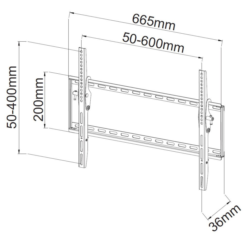 Techly ICA-PLB-161L. Maximum weight capacity: 50 kg, Minimum screen size: 101.6 cm (40"), Maximum screen size: 165.1 cm (65"), Minimum VESA mount: 200 x 200 mm, Maximum VESA mount: 600 x 400 mm. Tilt angle range: 0 - 12°, Distance to the wall (min): 3.6 cm, Distance to the wall (max): 3.6 cm. Product colour: Black