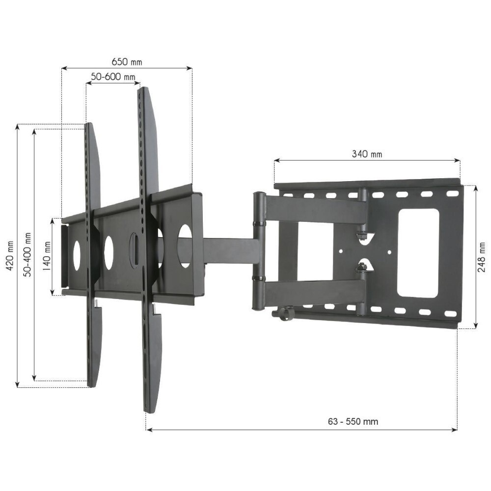 Techly ICA-PLB 148L. Höchstgewichtskapazität: 45 kg, Minimum Bildschirmgröße: 81,3 cm (32"), Maximale Bildschirmgröße: 165,1 cm (65"), Minimale VESA-Halterung: 100 x 100 mm, Maximale VESA-Halterung: 600 x 400 mm. Neigungswinkelbereich: -2 - 12°, Schwenkwinkelbereich: -90 - 90°, Abstand zur Wand (min): 6,35 cm, Abstand zur Wand (max): 50 cm. Produktfarbe: Schwarz