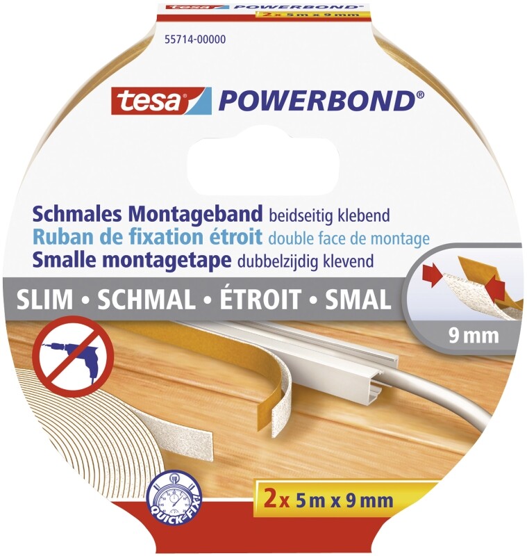 Tesa Powerbond Slim - Mounting tape - Multicolor - 5 m - Indoor - Plastic,Wood - 9 mm
