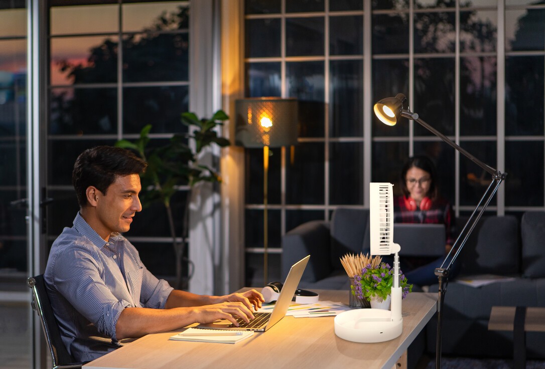 Trebs Tragbarer, flexibler Tisch- und 20-cm-Sockelventilator mit Li-Ionen-Akku Weiß