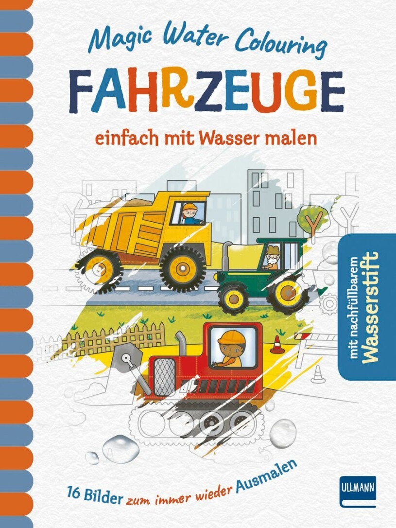 Lass wie durch Zauberhand bunte Bilder von Fahrzeugen entstehen. Fülle den Stift mit Wasser und streiche mit der Spitze über die magischen Seiten. Schon erstrahlen die Bilder in leuchtenden Farben. Und das Beste: die 16 Bilder können immer und immer wieder bemalt werden. Einfach die Motive trocknen lassen und erneut mit Wasser einfärben. Zusätzlich mit 18 Motiven zum Ausmalen und Platz zum Zeichnen eigener Motive.