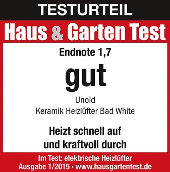 Unold 86440. Type: Fan electric space heater, Heating element type: Ceramic, Oscillation range: 75°. Placement options: Floor, Product colour: White, Housing material: Plastic. Heating power: 2000 W, Heating power (min): 1300 W. AC input voltage: 220 - 240 V, AC input frequency: 50 Hz. Width: 222 mm, Depth: 177 mm, Height: 347 mm
