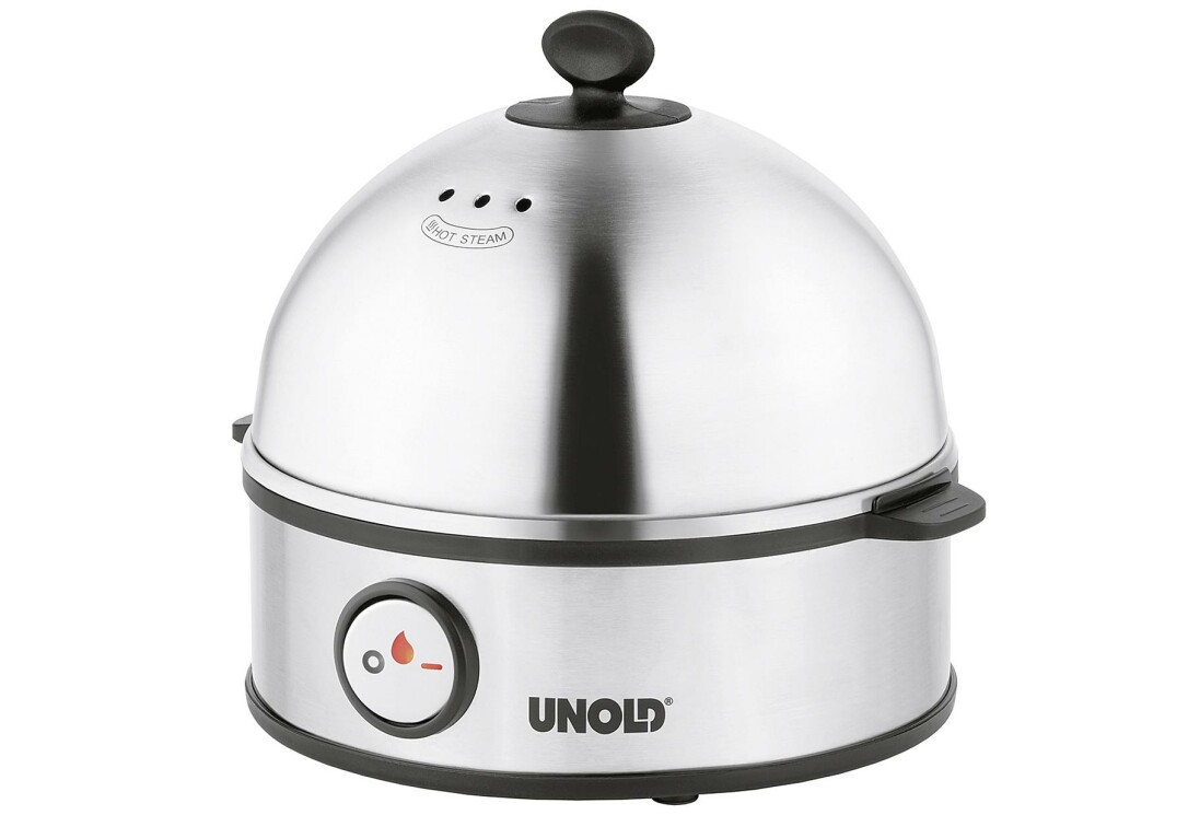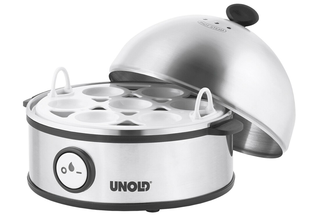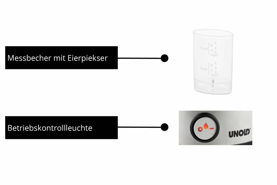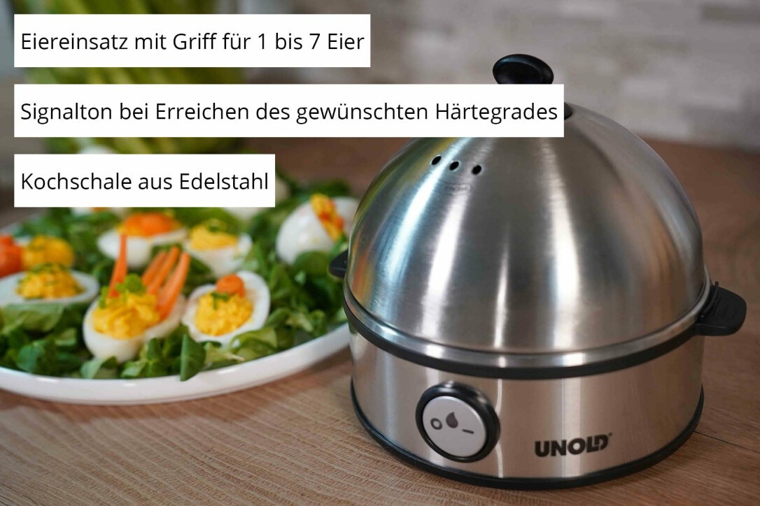 Bis zu sieben Eier lassen sich im EIERKOCHER Edel in einem Arbeitsgang garen - wachsweich, mittel oder hart: die erforderliche Wassermenge wird mit dem skalierten Messbecher inkl. Eierpiekser eingefüllt. Der Signalton zeigt an, wann die Eier fertig sind.