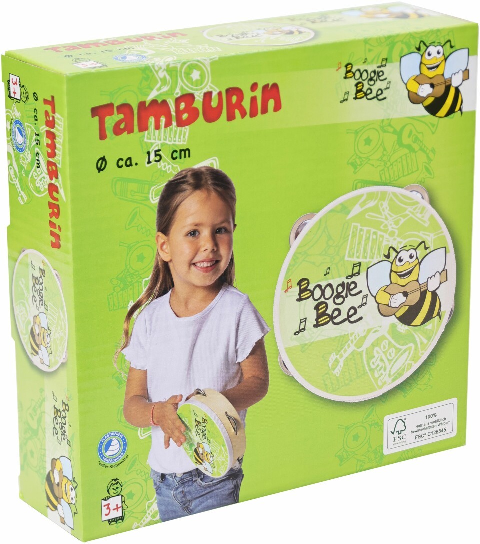 Boogie Bee Holz Tamburin mit einem Durchmesser von ca. 15 cm. Für Kinder ab 3 Jahren.
