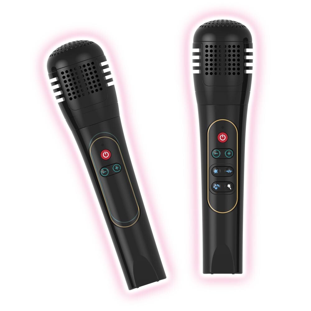 Zum Star der Karaoke-Show werden und in die Welt der Musik eintauchen! Diese coole Karaokemaschine inklusive 2 kabellosen Mikrofonen bringt Leben in jede Party! Faszinierende Lichtshow mit 5x5 magischen Leuchttasten und RGB-Lichtern für ein interaktives Erlebnis. Die Mikrofone haben jeweils 4 Soundeffekt-Tasten für coole Stimmeffekte wie Vibrato, Chorus oder lustige Pitch-Effekte (hoch, tief, Roboter) und Duett. 40-Watt-Lautsprecher: Satter Sound für kraftvolle Beats und glasklare Stimmen. 5 Modi und 13 Aktivitäten (Stimmbildung, Singen lernen, Musikmodus, Pixel Art Creator u. v. m.!). Pixel Art Creator: 25 magische Leuchttasten zum Kreieren von Pixelgrafiken, die im Rhythmus leuchten. Schnelle Auswahl mehrerer Leuchttasten ermöglicht das gleichzeitige Ändern der Farbe aller ausgewählten Leuchttasten. 10 Melodien und 5 Lieder zum Aufwärmen der Stimme und zum Erlernen des Singens. 8 tolle Spiele (Ein-und Zweispielermodus). Magic Voice: Den Gesang aus Liedern entfernen und selbst singen. Kabellose Mikrofonverbindung über Bluetooth für maximale Bewegungsfreiheit. AC-Anschluss und 3,5mm Line-In für vielseitige Anschlussmöglichkeiten. Eingebauter Handyhalter und Tragegriff, um die kompakte Karaokemaschine überall hin mitzunehmen. Kindersicheres Batteriefach und Lautstärkeregler.