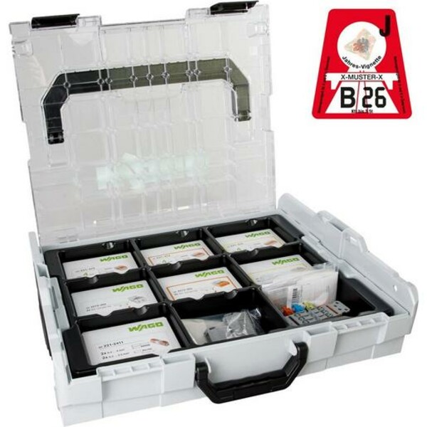 Profi-Set enthält: 100 Stück Typ 221-412, 50 Stück Typ 221-413, 25 Stück Typ 221-415, 60 Stück Typ 221-2411, 100 Stück Typ 2273-202, 100 Stück Typ 2273-203, 100 Stück Typ 2273-205, 1 Stück Typ 207-1331, 1 Stück Typ 207-1332, 1 Stück Typ 207-1333, 2 Stück Typ 221-500, 1 Stück Typ 221-500/000-006, 1 Stück Typ 221-500/000-053, 2 Stück Typ 2273-500, 1 Stück Typ 221-2503, 5 Stück Typ 221-941, 5 Stück Typ 221-942/000-006, 1 Stück Typ 2773-2401, 1 Pck. Typ 221, 1 Stück Typ 221-420.