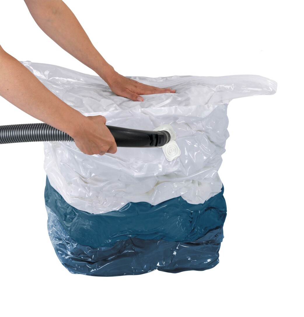 Mit dem praktischen WENKO Vakuum Aufbewahrungssystem lösen sich alle Platzprobleme im Handumdrehen. Einfach die Kleidungsstücke in den Vakuum Cube L Beutel geben, verschließen und mit Hilfe des Staubsaugers die Luft durch das Blitz-Ventil absaugen. Spielend leicht wird so bis zu 75% Platz gespart. Der Vakuum-Beutel mit der Größe L (70 x 100 x 35 cm) ist mit einer praktischen Standfläche für größeres Fassungsvermögen ausgestattet. Die große Vakuum-Tasche bietet ideale Aufbewahrungsmöglichkeiten sowohl für Saison-Bekleidung oder Bettdecken als auch für Gartenpolster oder einen Kinder-Autositz. Das Volumen der Decken oder Polster wird auf ein Minimum reduziert. Staub, Nässe und Motten werden in diesem geschützten Behältnis von dem Inhalt fern gehalten. Jederzeit ist eine Übersicht des Inhalts durch die Transparenz des Vakuum-Platzsparers gewährleistet, ohne diesen zu öffnen. Bei Entnahme aus dem Aufbewahrungssystem nimmt die Kleidung wieder das ursprüngliche Volumen an. Hinweis: Ein Vakuumsystem empfiehlt sich nicht für Seide und Leder sowie feder- oder daunengefüllte Textilien, da ein eventueller Bruch der Federn eine eingeschränkte Wärmeleistung zur Folge haben kann.