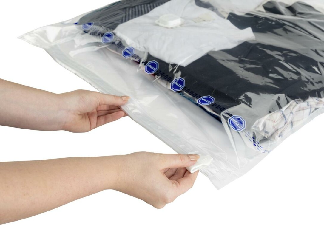 Das clevere WENKO Vakuum Aufbewahrungssystem löst alle Platzprobleme im Handumdrehen. Einfach die zu verstauenden Gegenstände in den Vakuum Jumbo Cube XXL Beutel geben, auf der gesamten Länge fest verschließen und mit Hilfe des Staubsaugers die Luft durch das Blitz-Ventil absaugen. Spielend leicht wird so bis zu 75% Platz gespart. Der Jumbo Vakuum-Beutel mit der Größe XXL (180 x 90 x 50 cm) ist mit einer praktischen Standfläche für noch größeres Fassungsvermögen ausgestattet. Der große Vakuum-Sack bietet ideale Aufbewahrungsmöglichkeiten für besonders große und sperrige Gegenstände wie z.B. Kinderwagen oder Gartenmöbelauflagen. Das Volumen der Decken oder Polster wird auf ein Minimum reduziert. Staub, Nässe und Motten werden in diesem geschützten Behältnis von dem Inhalt fern gehalten. Die extra dicke Folienqualität eignet sich für Langzeitaufbewahrung. Jederzeit ist eine Übersicht des Inhalts durch die Transparenz des Vakuum-Platzsparers gewährleistet, ohne diesen zu öffnen. Bei Entnahme aus dem Aufbewahrungssystem nehmen die Textilien wieder das ursprüngliche Volumen an. Hinweis: Ein Vakuumsystem empfiehlt sich nicht für Seide und Leder sowie feder- oder daunengefüllte Textilien, da ein eventueller Bruch der Federn eine eingeschränkte Wärmeleistung zur Folge haben kann.