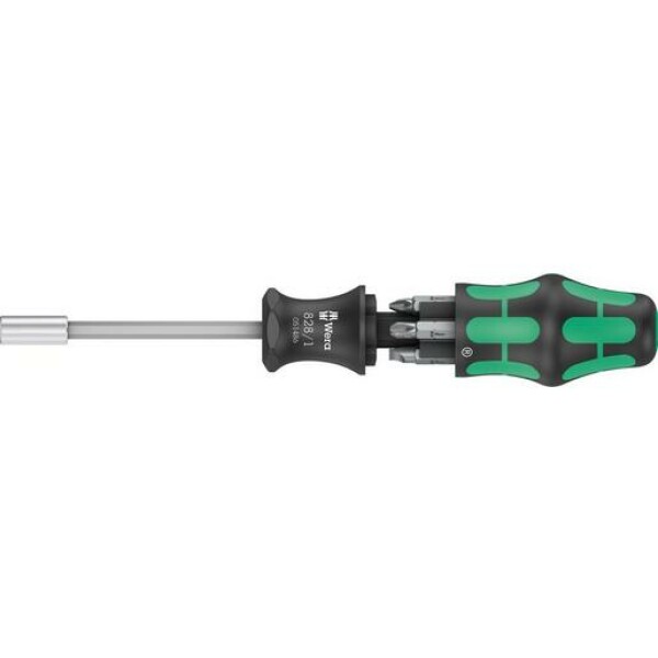 Wera Kompaktwerkzeug mit mehrkomponentigem Kraftform Griff für hohe Arbeitsgeschwindigkeiten und besonders ergonomisches Verschrauben. Im Griff integriertes Bit-Magazin, 6 zähharte Bits für den universellen Einsatz. Bithalter mit starkem Dauermagnet für sicheren Sitz des Bits.
