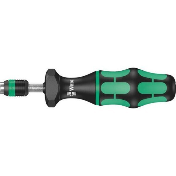Wera torque screwdriver. Variable torque setting option with highest precision. Simple adjustment of the required torque value without any special tools. Easy-to-read scale value; audible click signal. Rapidaptor quick-release technology for rapid bit change. Unlimited torque to loosen seized screws. Multi-component Kraftform handle with hard and soft zones for high working speeds, whilst being easy on the hand. Suitable for bits with 1/4" hexagon head drive as per DIN ISO 1173-C 6.3 and E 6.3 (ISO 1173).