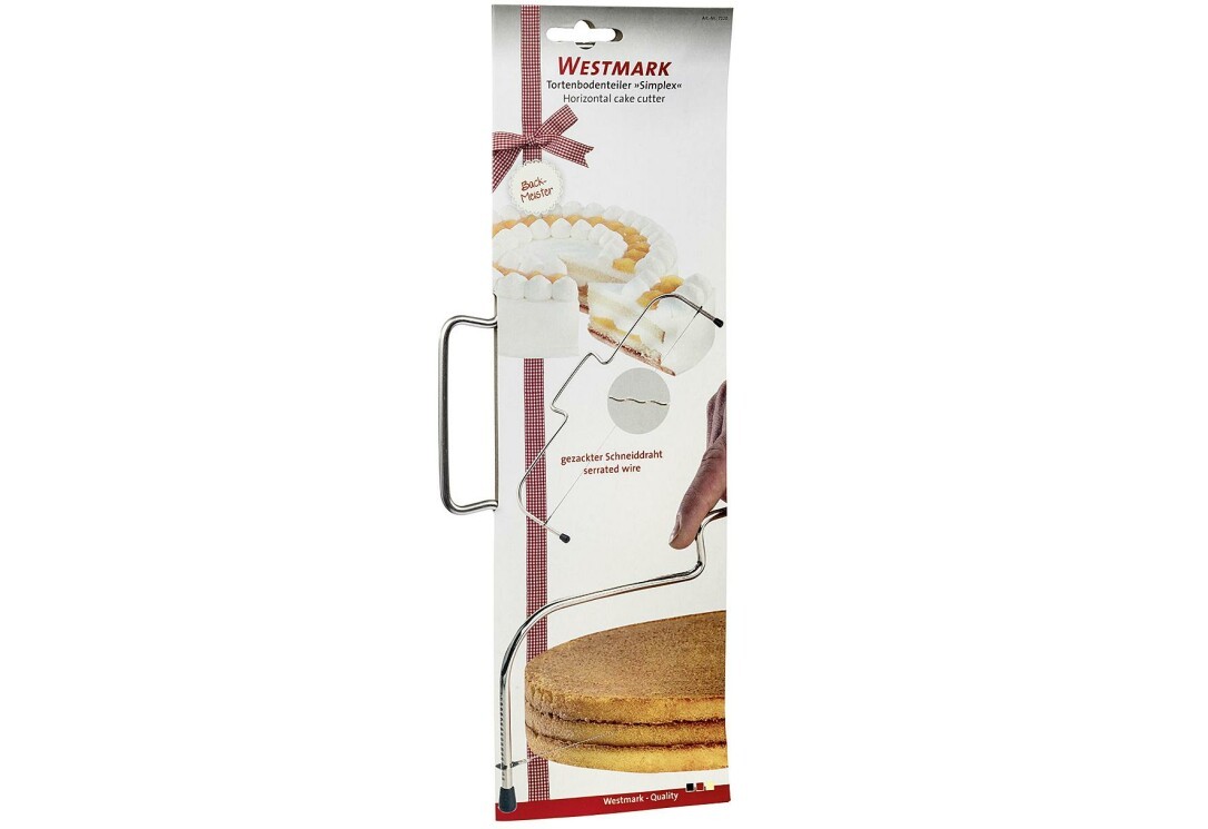 Mithilfe des Tortenbodenteilers haben Sie keine Schwierigkeiten mehr, die Torten- und Kuchenböden gleichmäßig zu schneiden. Der Tortenbodenteiler ist aus rostfreiem Edelstahl hergestellt. Nach dem Gebrauch können Sie ihn einfach in der Spülmaschine waschen. Besonders hilfreich ist, dass der Schneider sich in der Höhe einstellen lässt. Maße: (LxBxH) 32x13,5x5 cm. Gewicht: 46 g.