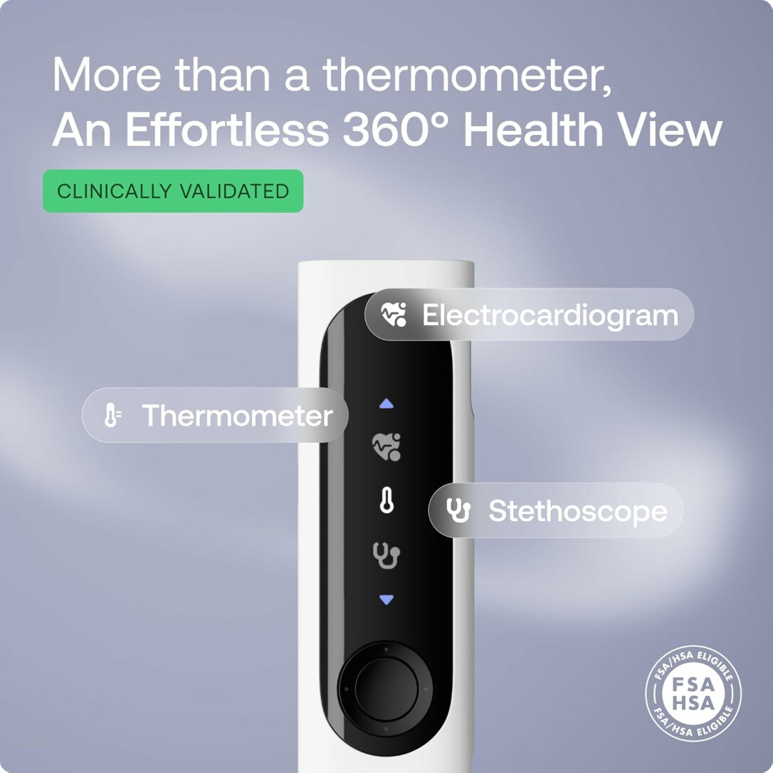 Entdecken Sie BeamO, den revolutionären 4-in-1 Gesundheits-MultiScan. Kleiner als ein Smartphone, kombiniert es 4 medizinische Sensoren: ein kontaktloses Thermometer, ein medizinisch genaues Elektrokardiogramm, ein miniaturisiertes Oximeter und ein digitales Stethoskop. BeamO ist für den einfachen Gebrauch zu Hause konzipiert, ob zur Selbstmessung oder während einer Telekonsultation. Mit BeamO können Sie nicht nur die Temperatur messen, sondern auch die Gesundheit des Herz-Kreislauf-Systems und der Atemwege³ genau beurteilen. BeamO kann Fieber mit klinischer Präzision messen, indem es automatisch die Schläfenarterie identifiziert und so eine optimale Messung ermöglicht. Die Ergebnisse werden sofort auf dem integrierten Farbbildschirm angezeigt. Darüber hinaus erkennt das Gerät mithilfe des medizinisch genauen Elektrokardiogramms² Anzeichen von Vorhofflimmern und kann mit dem miniaturisierten Oximeter Anzeichen von Hypoxämie, einem abnormal niedrigen Sauerstoffgehalt im Blut, ermitteln. Features: - Erkennung von Fieber mit klinischer Genauigkeit - Erkennung einer Herzanomalie - Analyse des Atmungssystems - Zur Selbstmessung oder für Live-Televisite - Ideal für die ganze Familie Lieferumfang: BeamO, USB-C auf Klinkenadapter, USB-C auf USB-A Ladekabel, BeamO Etui, Kurzanleitung, Produkthandbuch