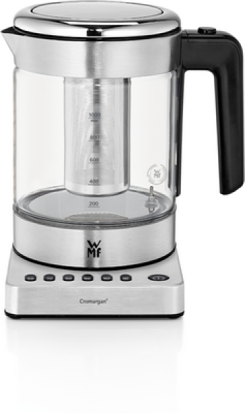 WMF KITCHENminis 04.1318.0012. Water tank capacity: 1 L. Power: 1960 W. Product colour: Stainless steel, Housing material: Glass, Adjustable thermostat, Water level indicator. Cordless. Keep warm function, Filtering