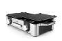The WMF LONO Master Grill made of matt Cromargan is ideal for grilling enjoyment inside and outdoors. With a 28 x 50 cm grill area, the LONO Master Grill offers plenty of space for preparing large and varied grilled dishes. It has two separate ribbed grill plates whose temperatures can be freely adjusted using separate controls with LED lighting. In the LONO Master Grill, the heating element is also built into the two extra thick cast aluminium grill plates. The LONO Master Grill not only offers plenty of space, its 2,400 watt output guarantees perfect grill results. The removable fat collection tray and the two grill plates are dishwasher safe. It is also equipped with a removable wind and splash guard for outdoor use.