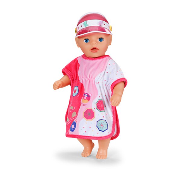 Diese bunte Strand-Tunika mit coolem Pinplay Sonnenschutz ist die perfekte Ergänzung zum gesamten Strand-Thema. Der Sonnenschutz passt auf alle 43cm und 36cm großen Puppen. Ab 3 Jahren.